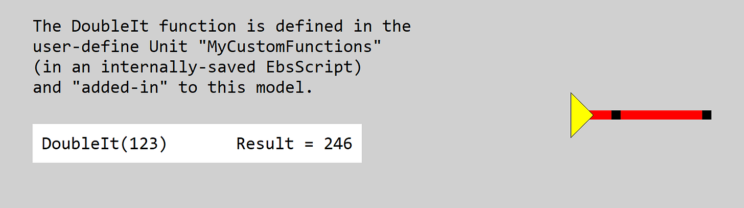 Later in this post, I describe how to define functions that can be available to ALL models, analogous to functions defined in Excel Add-Ins, which become available to ALL your spreadsheets.